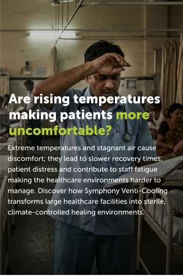 Providing a safe, breathable environment in high-density medical buildings is no longer optional; it's a standard. Symphony’s Venti-Cooling technology addresses the specific challenges of large-volume wards where traditional AC is unfeasible. By ensuring 100% fresh air displacement, we are not just cooling spaces; we are improving the quality of patient care and clinical safety across the nation.